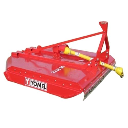 Desmalezadora rotativa 2221BR reforzada Yomel, de acople 3 puntos central/lateral. Sistema de corte con cuchillas oscilantes, reversibles y forjadas; de acero de alta resistencia al desgaste. Con cilindro hidráulico que permite la regulación de la altura de corte desde el tractor.