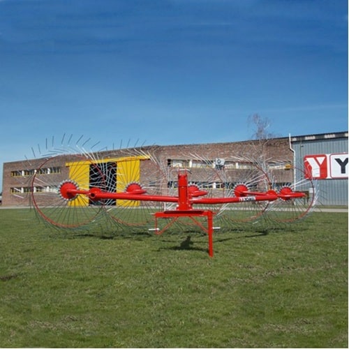 Los rastrillos hileradores, son utilizados en la recolección del heno, cumple varias funciones en todo el proceso de preparación del forraje. Este se caracteriza por trabajar con la fricción sobre la tierra al desplazarse, estilo rueda libre. Sus dedos circulares alzan la hierba, la trasladan y voltean, facilitando la recolección del heno.